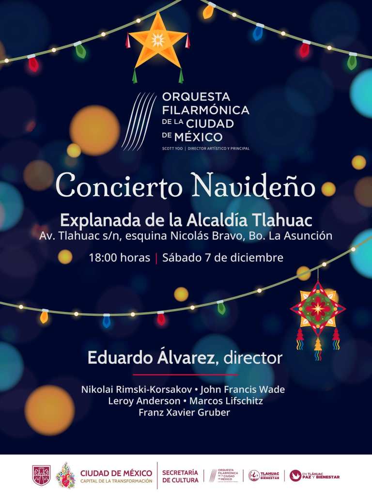 La Orquesta Filarmónica de la Ciudad de México abrirá la serie de eventos que con motivo de la temporada decembrina la alcaldía Tláhuac, con la colaboración del gobierno capitalino, ha preparado para festejar la Navidad en la demarcación.