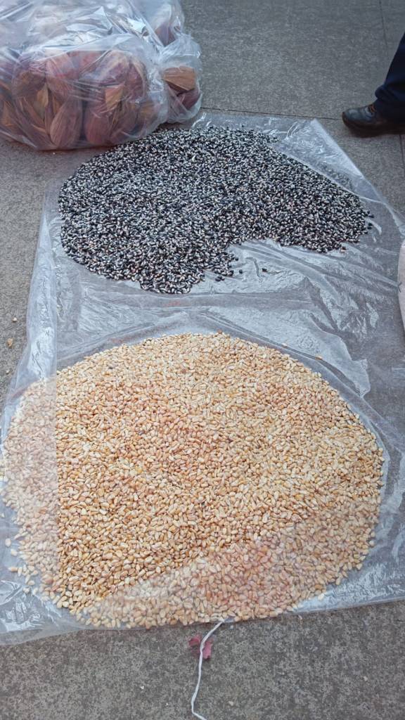 Recordamos a los terratenientes de los pueblos quienes lo ofrecían para su venta a los «maiceros» en costales llenos de gramínea colocados en básculas romanas donde se pesaba los bultos. El desgrane se desarrollaba a mano en «oloteras»[2].