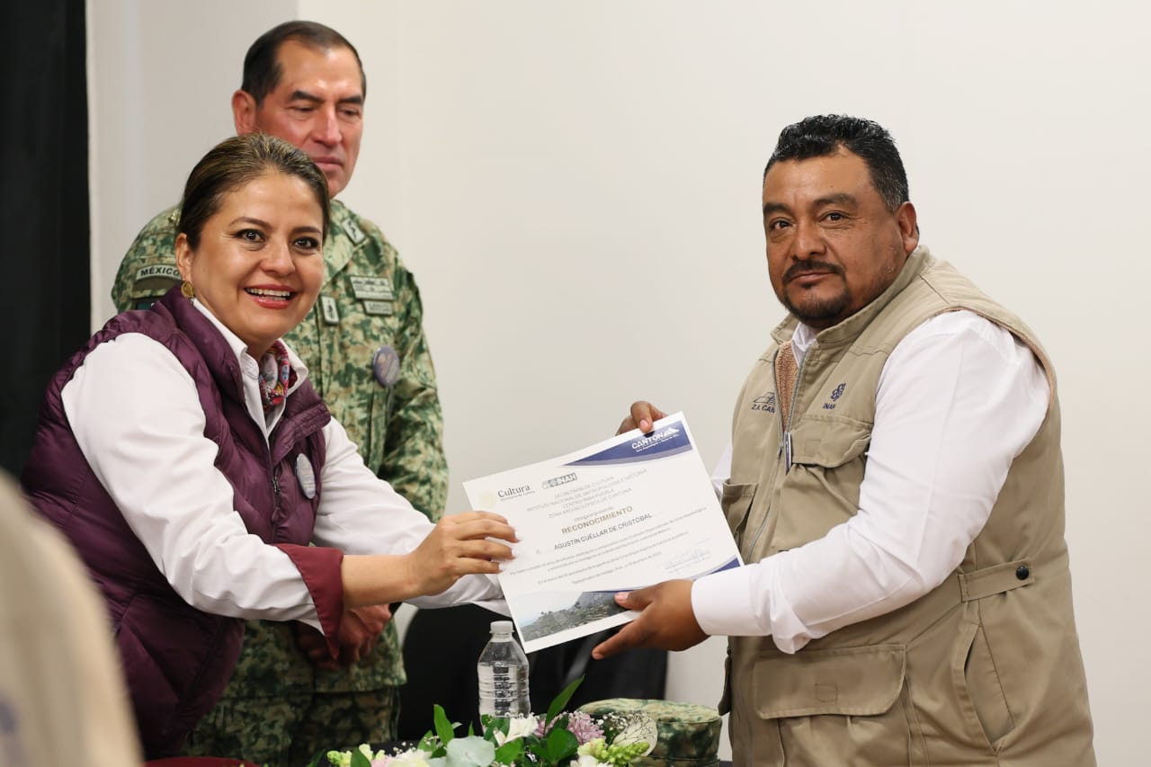 Una veintena de pobladores, incluidos algunos que comenzaron a trabajar en el sitio siendo jóvenes y ahora son sus custodios y guías, recibieron un reconocimiento por parte del gobierno mexicano, así como de la diputada local Azucena Rosas Tapia y del presidente municipal de Tepeyahualco, Said Godos Luna.