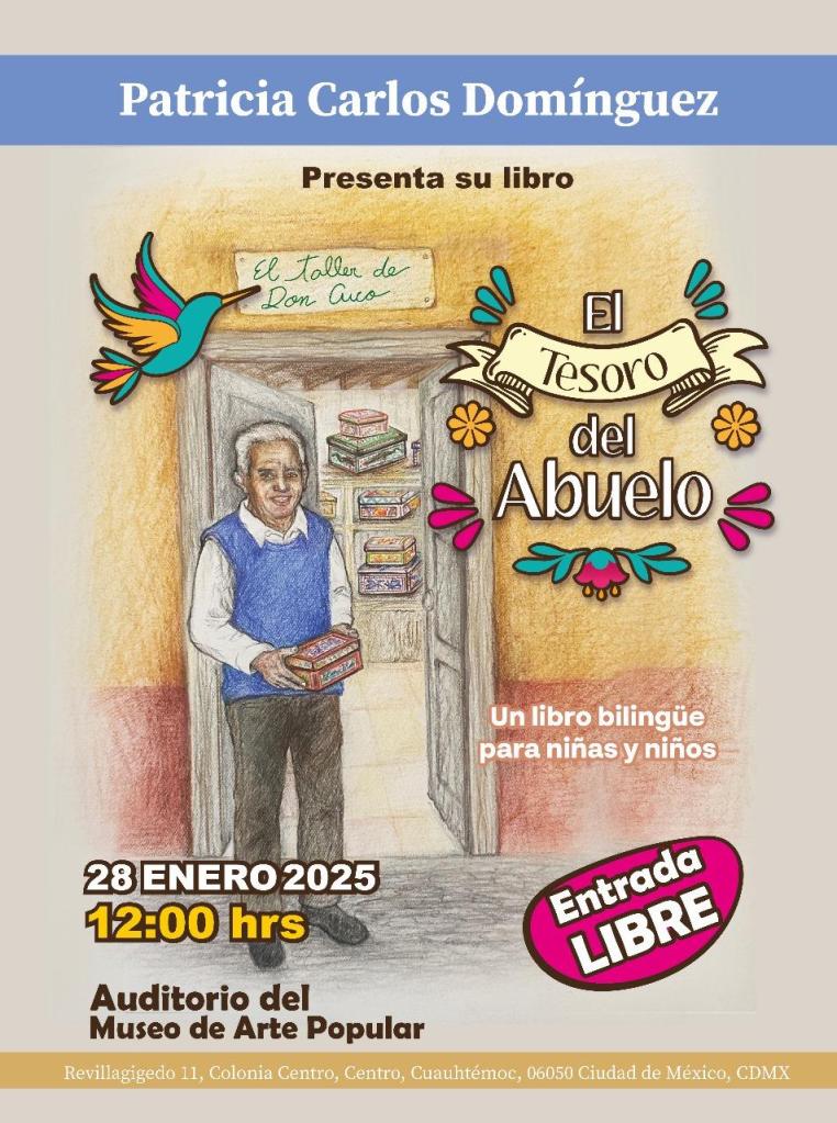 El Tesoro de mi abuelo se presentará el próximo martes 28 de enero a las 12 h en el Museo de Arte Popular, ubicado en Calle Revillagigedo 11, Colonia Centro, Alcaldía Cuauhtémoc de la Ciudad de México. El libro será presentado por el doctor Walter Vivían. ♦