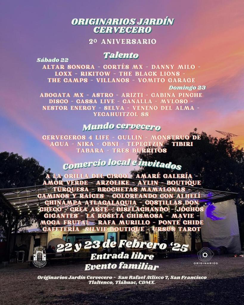 Disfruta de un ambiente festivo, lleno de sabores artesanales, música en vivo y actividades especiales para compartir con tus seres queridos en este gran evento que tiene preparado Originarios Jardín Cervecero, en conmemoración de su segundo aniversario.