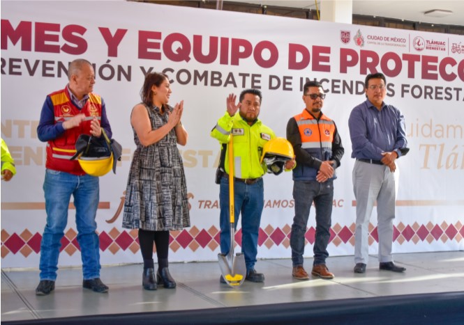 Al entregar uniformes con protección térmica, incluso resistentes en condiciones extremas de calor, a los integrantes de la Brigada de Combate contra Incendios Forestales de la Alcaldía Tláhuac, la titular de la demarcación, Berenice Hernández, reconoció la heroica labor que estos desarrollan en el combate a los siniestros que afectan tanto el suelo rural como el suelo de conservación, en laderas, barrancas y canales.
