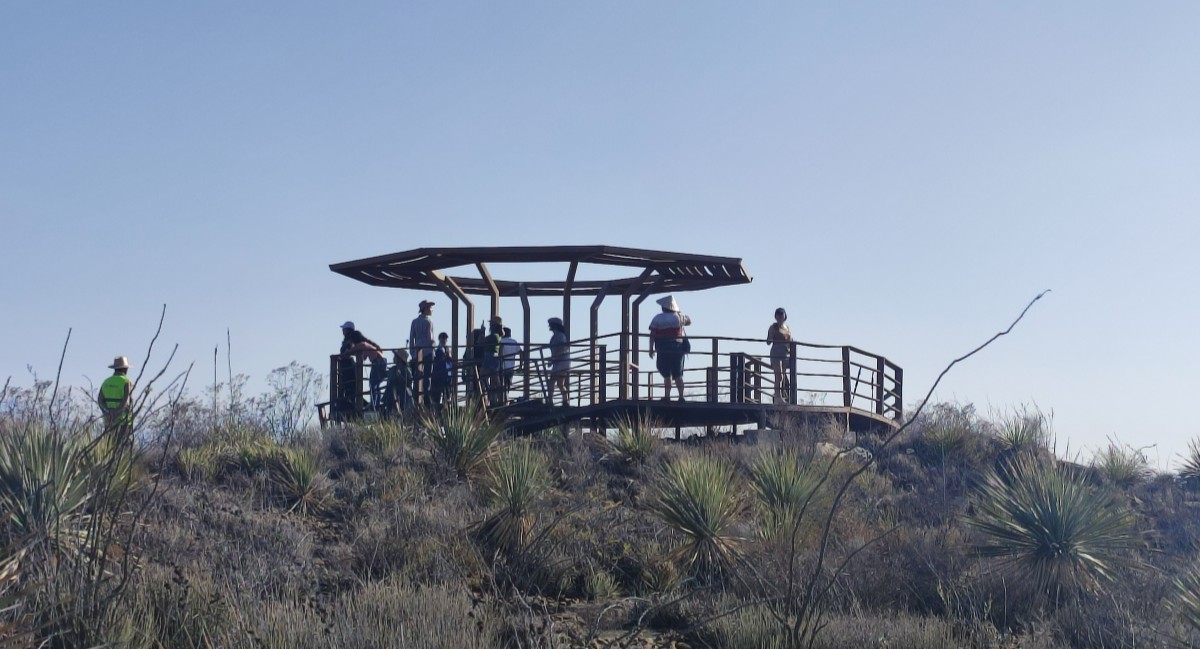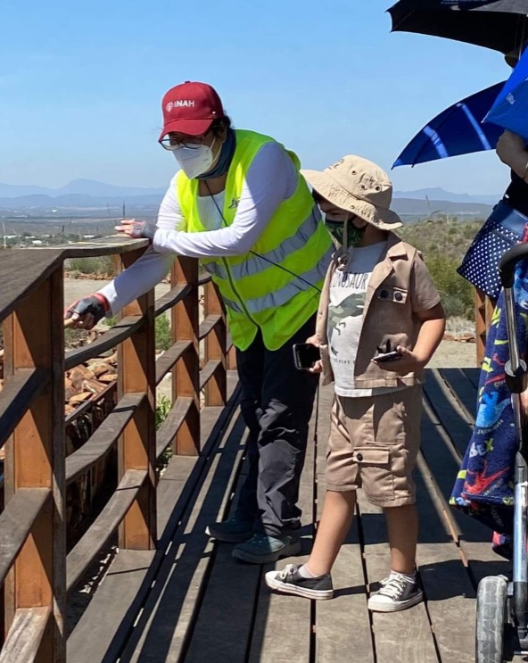 Fotografía superior izquierda es de una visita de público en general en 2022; en la parte inferior es la guía del paisaje, ambas tomadas por Felisa Aguilar. Y del lado derecho otra fotografía de la guía del paisaje tomada en 2023 por Leonardo Mercado