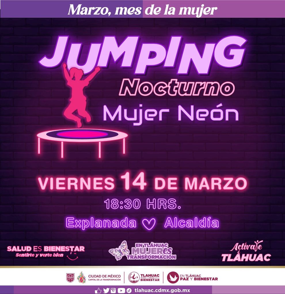 Como parte de la gran cruzada por la salud individual y colectiva a través del deporte que lleva a cabo en la Alcaldía Tláhuac a través del programa «Actívate Tláhuac», programa implementado por la alcaldesa Berenice Hernández, y en el marco de la conmemoración Marzo, Mes de la Mujer, se llevará a cabo una sesión de Jumping Nocturno «Mujer Neón», este viernes 14.