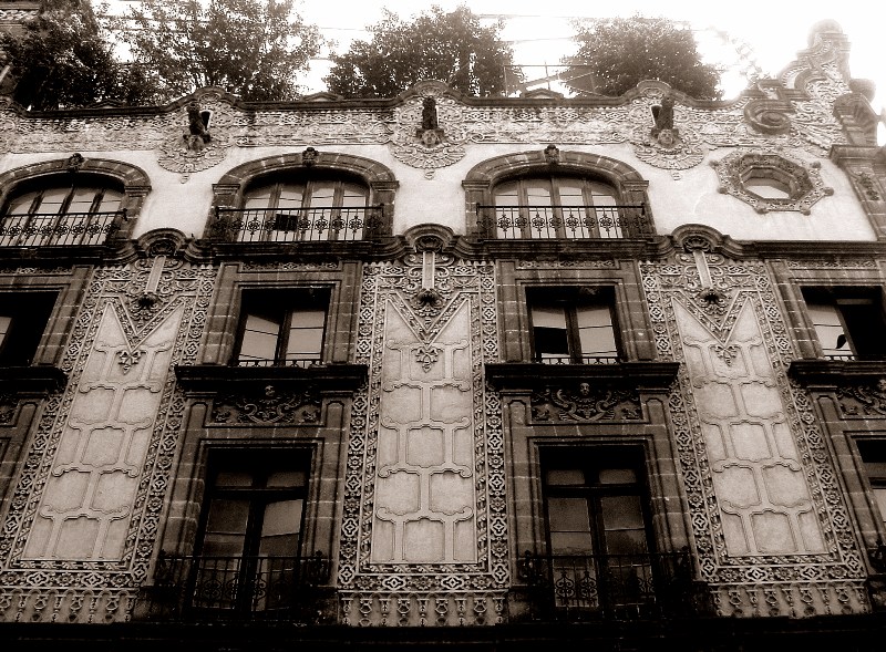 »El edificio tiene una historia larga e interesante: Dos casas en un principio, cuentan que fue refugio de partidarios de Hernán Cortés. Su primer dueño, Hernando de Ávila. En 1550 es comprada por Damián Martínez al precio de cinco mil pesos de oro de mina. Antigua residencia de los condes de Valle de Orizaba es, en palabras de Octavio Paz, testimonio de la victoria de la pasión sobre el llamado buen gusto, cuando en el siglo XVIII es revestido completamente su exterior con mosaicos policromos».