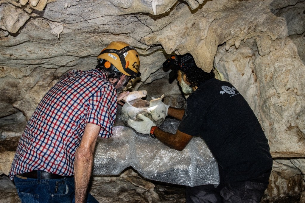 Recuperan olla prehispánica en cueva Garra de Jaguar de Quintana Roo