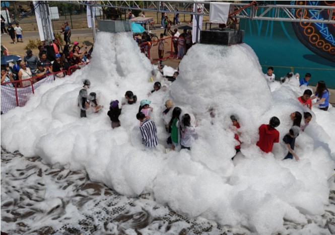Cabe destacar que la Fiesta de Espumas refrescó a los asistentes al Gran Festival, e incrementó la algarabía de los chiquitines del hogar, además de que se contó con la presencia de varios stands de libros y juegos didácticos, así como de cómics y personajes de series y películas de ficción infantil, por lo que la oferta fue muy variada.
