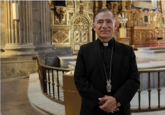 El obispo auxiliar de la Arquidiócesis Primada de México, monseñor Carlos Enrique Samariego López, expresó su satisfacción por las tareas con las que se recuperó el resplandor de cada escultura estofada y policromada del retablo central y los laterales de la Capilla de los Santos Ángeles, donde se celebran bautismos.