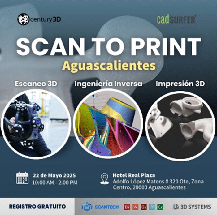 Durante esta jornada especializada, los asistentes –35 personas de distintos sectores de la industria de Aguascalientes– conocimos de primera mano cada una de las etapas clave en las que se centró el evento mencionado, y que a saber son las siguientes: Escaneo 3D Láser de alta precisión; Software de Ingeniería Inversa para desarrollo y rediseño de componentes; Software de Inspección Dimensional para control de calidad, y Tecnologías de Impresión 3D aplicadas a piezas funcionales y prototipos.