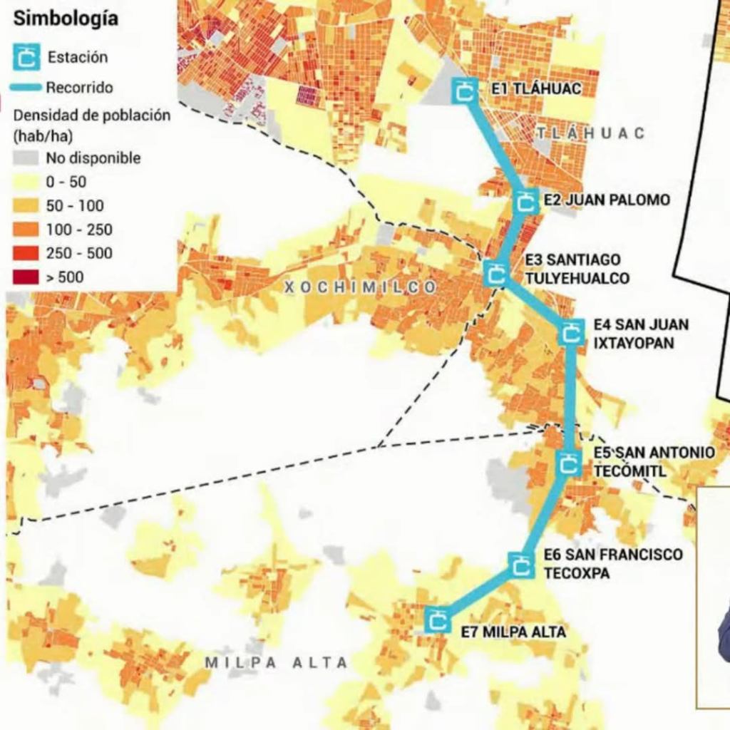 Beneficiará a tres alcaldías, porque una parte colinda con la frontera con Xochimilco y será la estación Tulyehualco. Beneficiará a pueblos, barrios y colonias de pueblos originarios. Tendrá una longitud de 12.3 kilómetros, y las estaciones serán las siguientes: