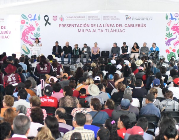 «Se trata de un proyecto de justicia territorial, porque el cablebús apoya a los que menos tienen, a quienes se movilizan en transporte público –como es la fuerza trabajadora de Tláhuac– y tardan horas en llegar a su trabajo o, también, la escuela, como es el caso de los estudiantes, todos los días», dijo Brugada Molina.