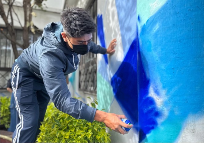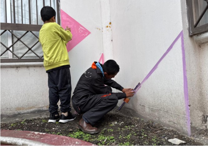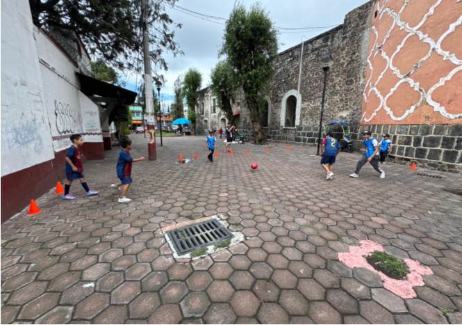 Y mientras unos hacían la faena, sus hijos aprovecharon para disputar una cascarita; mientras artistas urbanos hacían lo propio en paredes aledañas. | Fotografías: Antonio Miranda Paredes