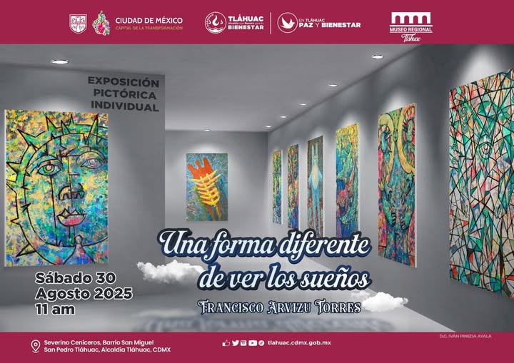 «Una forma diferente de ver los sueños» se titula la muestra pictórica con obra del artista plástico Arvizu 32 ~Francisco Arvizu Torres~, quien es originario del pueblo de San Francisco Tlaltenco, Alcaldía Tláhuac, la cual se expone desde el pasado viernes en el Museo Regional de Tláhuac.