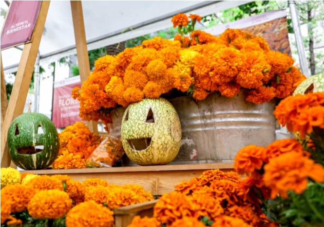 Fray Diego Durán nos da una relación de fiestas en honor a Quiláztli-Cihuacóatl, la señora de Xochimilco, en las que, la flor de Cempasúchil es la más notable, la única. De esa relación, la Hueytecuilhuitl, la fiesta de los grandes señores, nos presenta las imágenes de los hombres y las mujeres coronados con ensartes de cempasúchiles en las fiestas del mes de julio. Los xochimécatl, guirnaldas, colgaban del hombro izquierdo hacia la cadera derecha, y con ramos de la misma flor se entregaban a la danza en los patios ceremoniales, decorados con las mismas flores amarillas. Terminada la danza, ofrendaban sus ensartes a los dioses para después arrebatárselos en un aparente juego florido. La fiesta de julio tuvo por nombre Xochicalaquia, es decir, ofrecimiento de las primeras flores cultivadas en las chinampas que cubrían con su penetrante aroma los apantles, los acalotes (caminos de canoas), alfombrando las superficies de los altos ahuexotes.