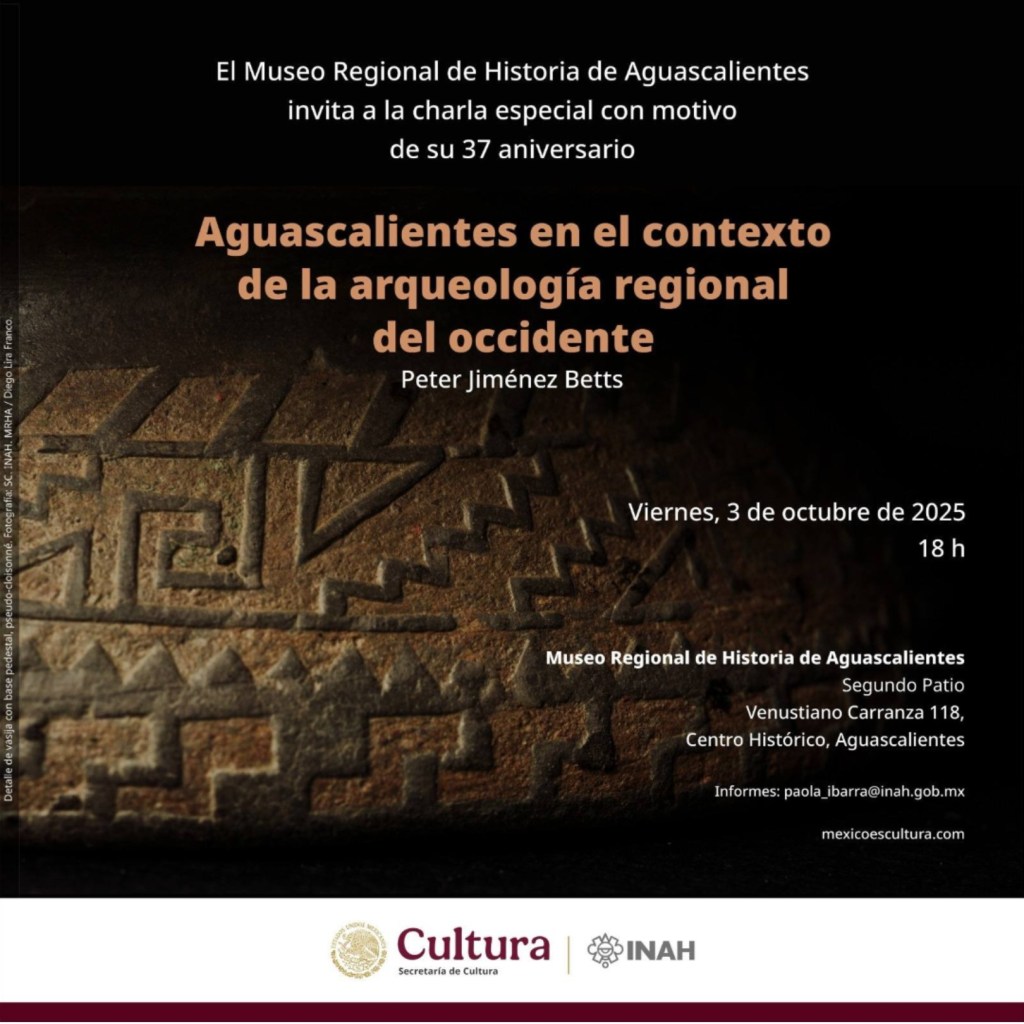 Posteriormente, se impartirá la ponencia «Aguascalientes en el contexto de la arqueología regional de occidente», en la cual el arqueólogo Peter Jiménez Betts abordará diversas figurillas y vasijas, entre otros bienes materiales, fechados entre los años 600 y 900 d.C., los cuales evidencian tradiciones compartidas entre los grupos humanos que habitaron los actuales territorios de Zacatecas y Aguascalientes. ♦