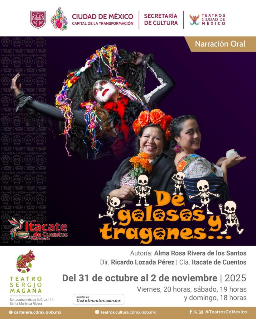 En el marco de su 35 aniversario, Itacate de Cuentos buscará celebrar junto con el público capitalino, a través de tres funciones especiales de «De Golosos y Tragones», un espectáculo interdisciplinario que reúne al cuento, la música tradicional y la danza para celebrar la riqueza cultural del Día de Muertos en México.