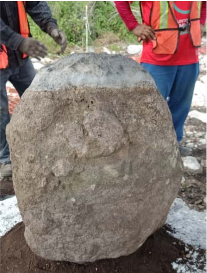 Progreso, Yuc.~ Una pieza de piedra caliza labrada a manera de un rostro antropomorfo, que muestra rasgos como órbitas oculares profundas, nariz chata y labios marcados por una hendidura que, a su vez, recalcan la barbilla, los cuales sugieren que se trata de la representación de un «señor anciano», y que marca un espacio restringido, fue descubierta en Yucatán por arqueólogos del INAH.