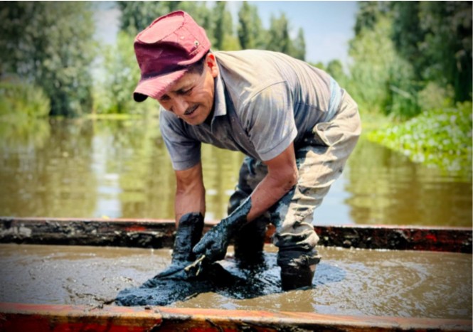 Con la mirada puesta en quienes trabajan las chinampas desde hace siglos, el proyecto pone en relevancia los conocimientos que conforman la identidad de la comunidad lacustre. En su obra, el investigador y promotor cultural documenta y difunde los saberes de los campesinos que sostienen el equilibrio entre el territorio, la memoria y la vida comunitaria.