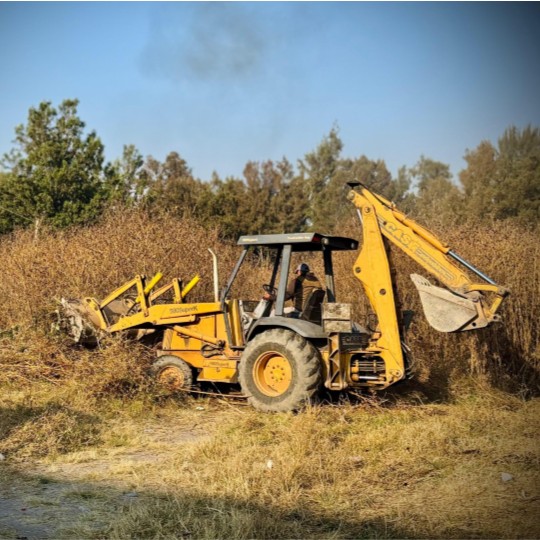 Con el apoyo de dos retroexcavadoras y tres camiones de carga, fue posible desyerbar el lugar luego de varios años de que ninguna autoridad de la llamada «transformación» le metió mano.