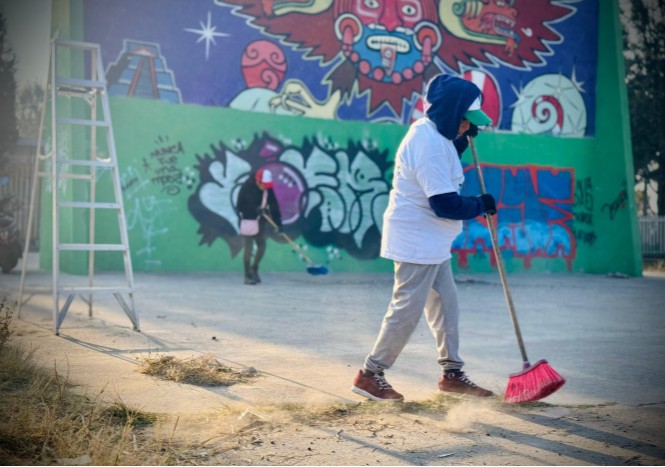 En la fotografía de portada se puede apreciar el estado deplorable en que se encontraba ese espacio público antes de que fuera atendido por quienes se sumaron a la jornada de «Tláhuac te quiero, te quiero bonito».