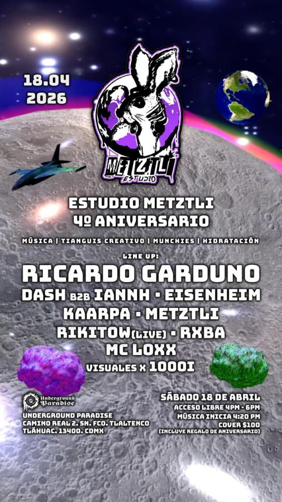 Metzli, el estudio musical que se ha consolidado como uno de los faros creativos más importantes de la escena electrónica en Tláhuac, está de manteles largos y lo celebrará a lo grande con un Line Up de culto.