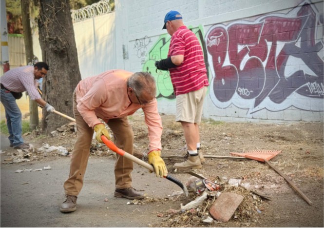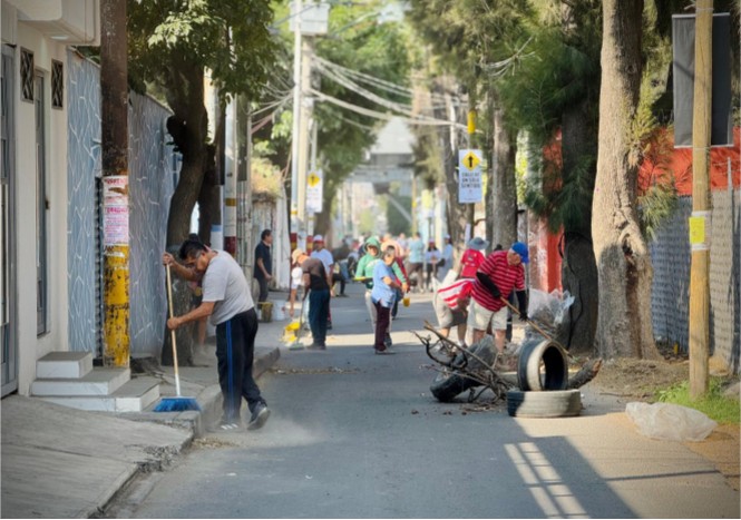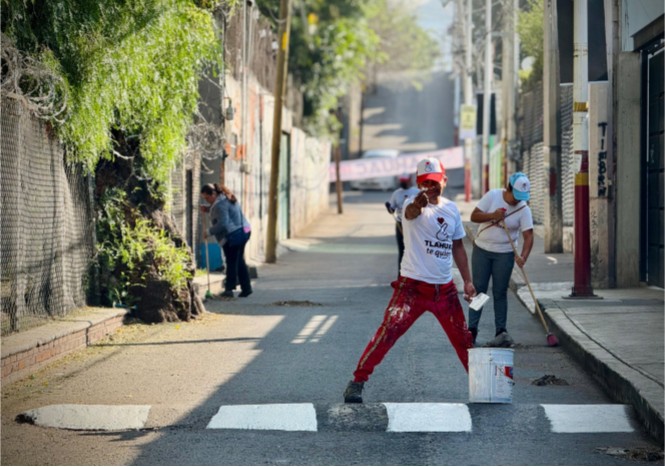 Ahí, los dinámicos actores de la iniciativa «Tláhuac, te Quiero Bonito», se encontraron con vecinas y vecinos y de inmediato se pusieron a trabajar en el desbrozado, limpieza y balizamiento de la calle que tras años de indiferencia por parte de la «broza cuatrotera» que usurpa los cargos públicos de la demarcación, justificaban su inacción tras las diversas solicitudes vecinales para que fueran a su calle a darle tan siquiera una manita de gato con el argumento del no hay, no hay recursos.