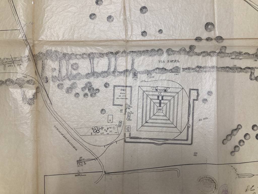 En su estudio, también identificó un álbum, resguardado en la Biblioteca Nacional de Antropología e Historia, fechado el 18 de octubre de 1908, posible obsequio de Leopoldo Batres al presidente Porfirio Díaz. En las fotografías, capturadas por Agustín Barraza, sobresalen tres del área de museo y jardín. ♦