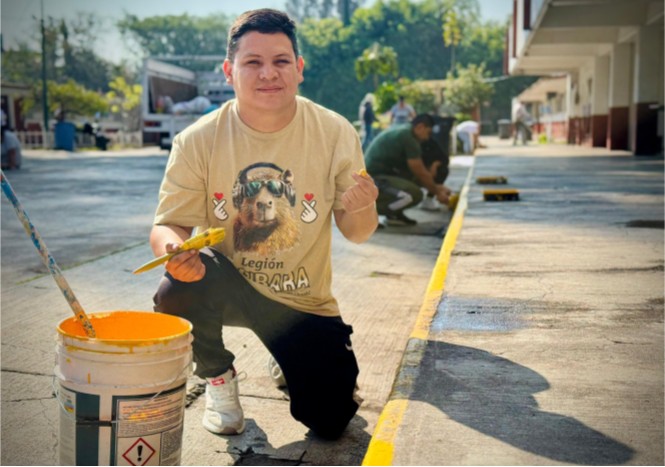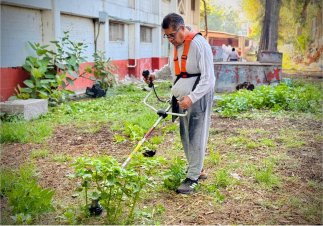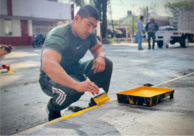 «Si es para dignificar los entornos de formación académica de nuestra niñez vamos ipso facto», les dijo Kanek, y de inmediato el pasado fin de semana llegaron al plantel de la Secundaria 80 con todos sus instrumentos de trabajo para trabajar, de la mano con madres y padres de familia, en el desbrozado, limpieza y pintado de buena parte de las instalaciones.